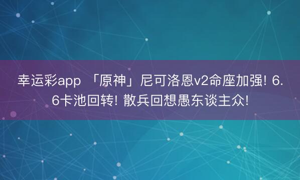 上一篇:幸运彩app 「原神」尼可洛恩v2命座加强! 6.6卡池回转! 散兵回想愚东谈主众!