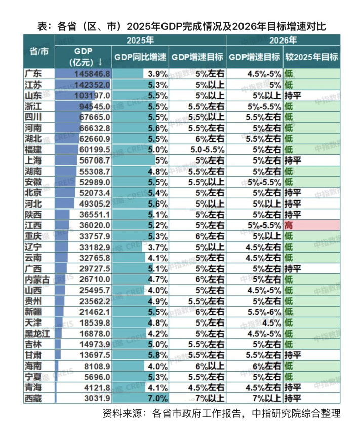 与房地产使命部署相呼应的是,多个省市对2026年经济增长策画进行了求实转机。凭据各省市政府使命陈述数据,在已公布策画的省市中,幸运彩app官方最新版下载绝大浩繁将2026年GDP增速策画设定在4.5%至5.5%区间。与2025年设定的策画比较,共有21个省市下调了增速策画。举例,经济大省广东的策画从“5%傍边”转机为“4.5%-5%”,江苏从“5%以上”转机为“5%”。仅江西省将策画从“5%傍边”小幅上调至“5.0%-5.5%”。