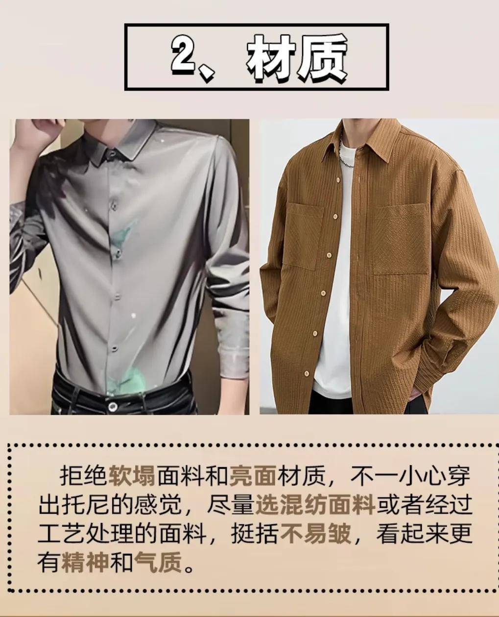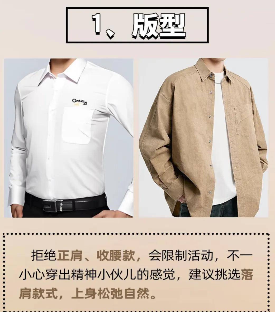 日常通勤穿搭中,男士衬衫的版型遴选尤为要道,不同的体态特征对应不同的版型决议: