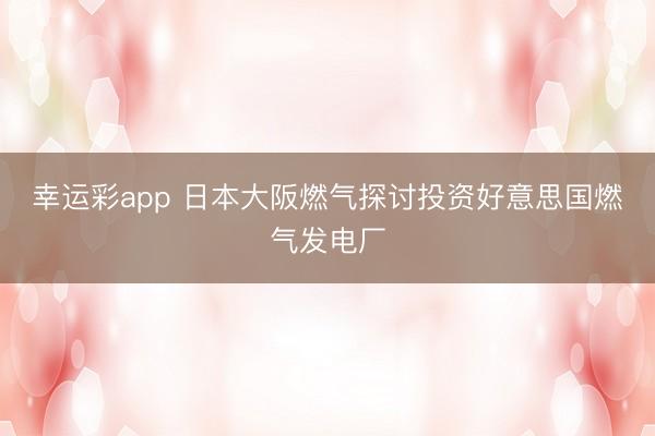 幸运彩app 日本大阪燃气探讨投资好意思国燃气发电厂
