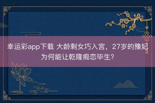 幸运彩app下载 大龄剩女巧入宫,27岁的豫妃为何能让乾隆痴