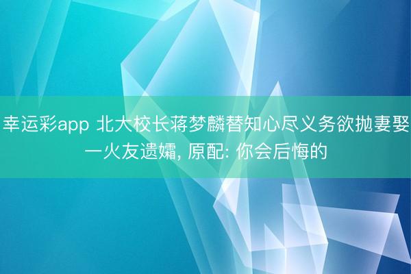 幸运彩app 北大校长蒋梦麟替知心尽义务欲抛妻娶一火友遗孀,