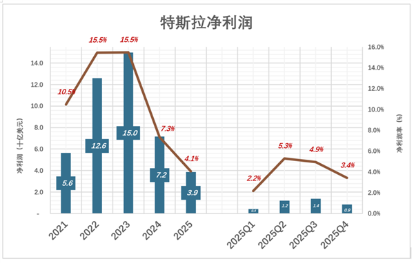 2025年特斯拉净利润仅格外于2023年的25.7%。