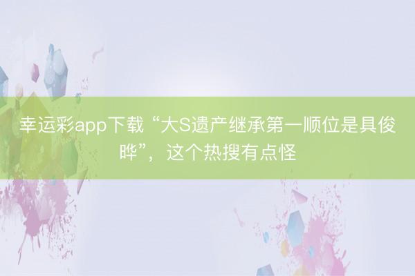 换个角度,这个热搜是不是也可以这么上:“大S遗产将落入汪小菲口袋”?“汪小菲一年净挣4亿台币”? 文 | 阿布 “大S遗产继承第一顺位是具俊晔”上了微博热搜,讲真,这个热搜就让人觉得很奇怪了——因为在...