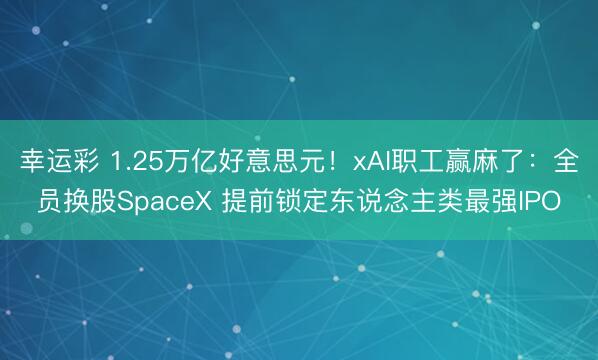 幸运彩 1.25万亿好意思元!xAI职工赢麻了:全员换股Sp