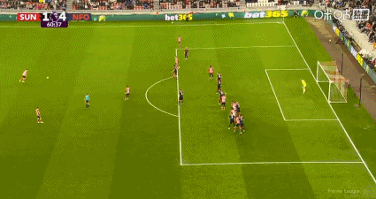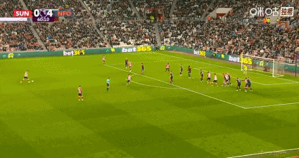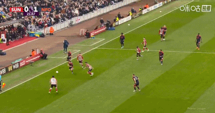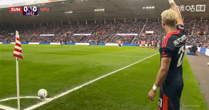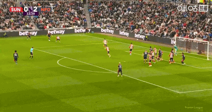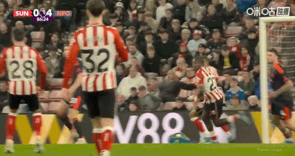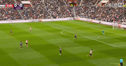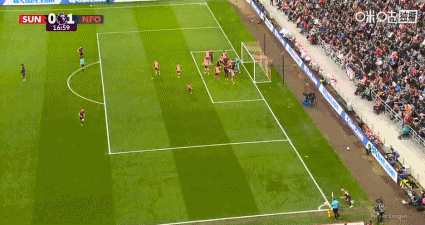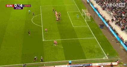 上半场伤停补时3分钟,半场鸿沟,桑德兰暂0-4诺丁汉丛林。