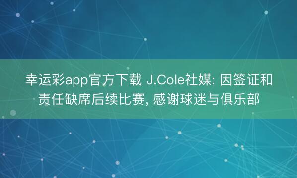 虎扑04月13日讯本日,说唱巨星J.Cole更新个东谈主社媒,施展因签证与责任原因无法参与后续的CBA比赛,同期关于CBA、南京队以及球迷抒发了感激与对不起。 原文翻译如下: 何如回事!关于帖子发布本...