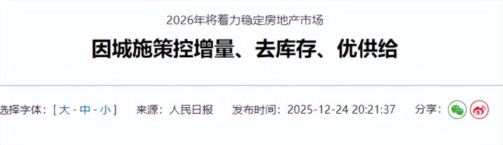 住建部2025年底开会的原话即是:“控增量、去库存、优供给”。