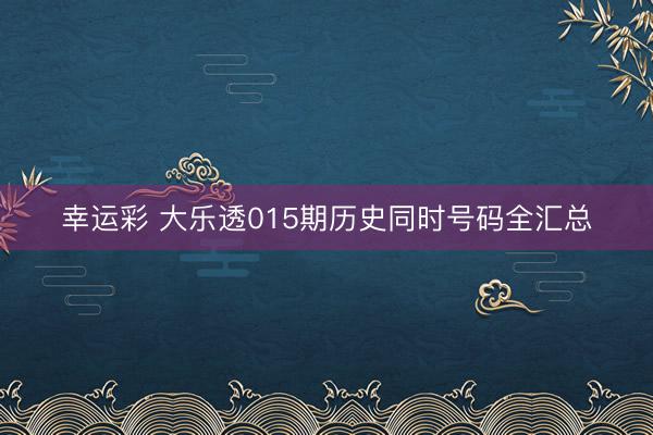 大乐透015期历史同时号码 [扫码下载app,中过数字彩1千万以上的众人齐在这儿!] {jz:field.toptypename/}...