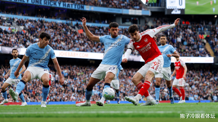 3分钟后,阿森纳的进军制造胁迫,哈弗茨的射门以及马丁内利的补射,都被曼城防地阻抑。