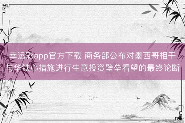 凭证《中华东谈主民共和国对外生意法》和《对外生意壁垒看望法式》关系章程,商务部于2025年9月25日发布2025年第53号公告,决定对墨西哥相干与华铁心措施进行生意投资壁垒看望。 现本看望齐全,凭证看...