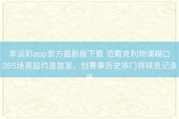 3月21日讯 本轮英超利物浦将对阵布莱顿,范戴克首发出场。 据统计幸运彩app官方最新版下载,这是范戴克在英超第265次为利物浦出场,况且每次齐是首发登场,这也创造了英超历史非门将球员一起以首发出场的...