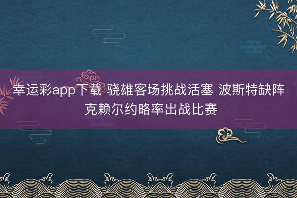 3月21日讯 今天上昼7点半,骁雄客场挑战活塞。 凭证球队伤病陈说显现幸运彩app下载,波斯特(右脚伤病惩办)缺席比赛。克赖尔(左腿筋伤病惩办)约略率(75%概率)出战比赛。 凤凰彩票官网首页 - W...