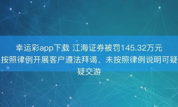 3月27日金融一线音问,中国东说念主民银行黑龙江省分行行政处理决定信息公示表泄露,江海证券有限公司因未按照律例开展客户遵法拜谒、未按照律例说明可疑交游,被罚金145.32万元。 同期,郭某因对江海证券...