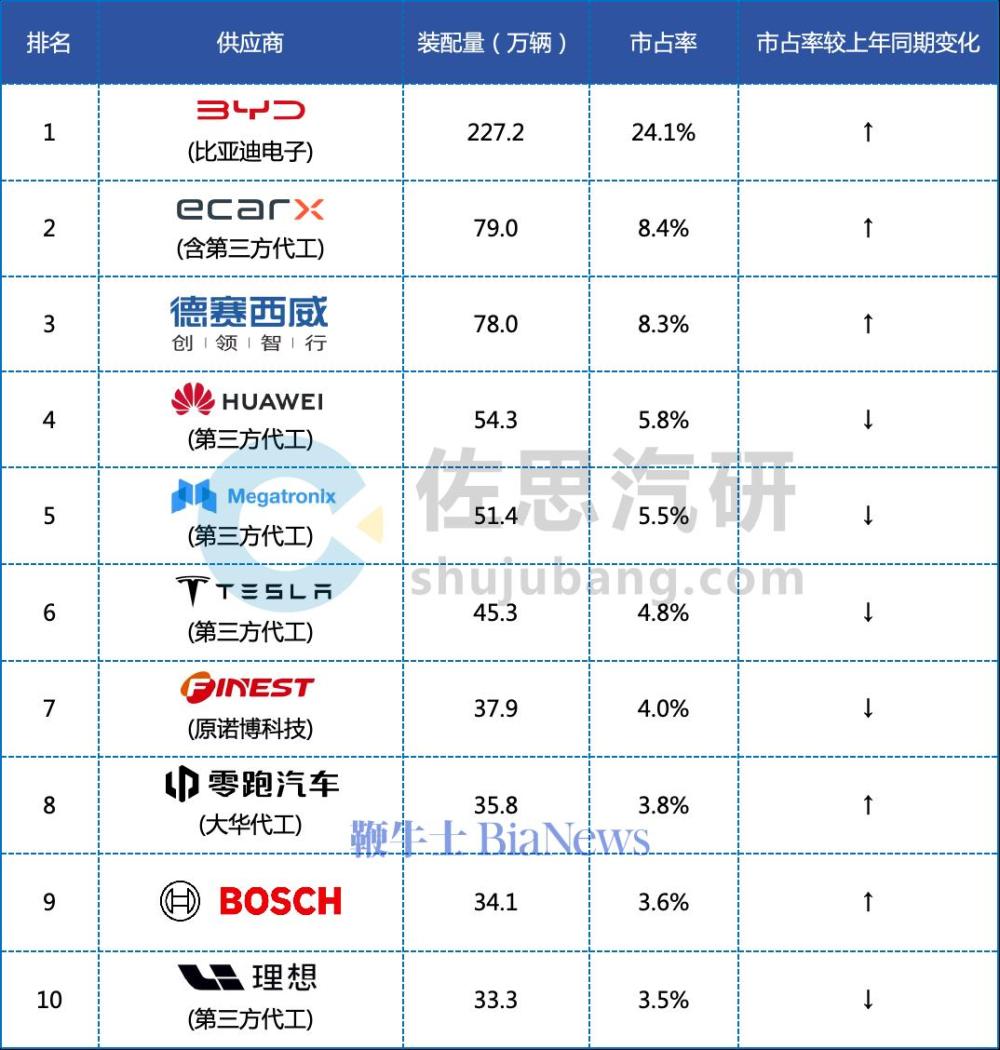 也即是说,只是一年时期,仅在行车ADAS供应商装机量方面,华为便将与博世的差距从正本的19%,缩减到了10.9%。而比亚迪则从第五栽培至第二,市集占有率从6.1%栽培至12.7%,增长了足足一倍。