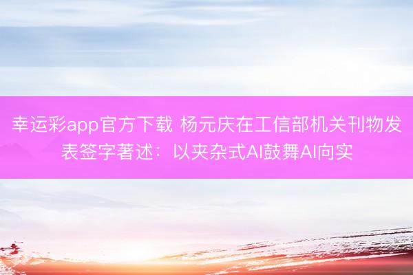 幸运彩app官方下载 杨元庆在工信部机关刊物发表签字著述:以